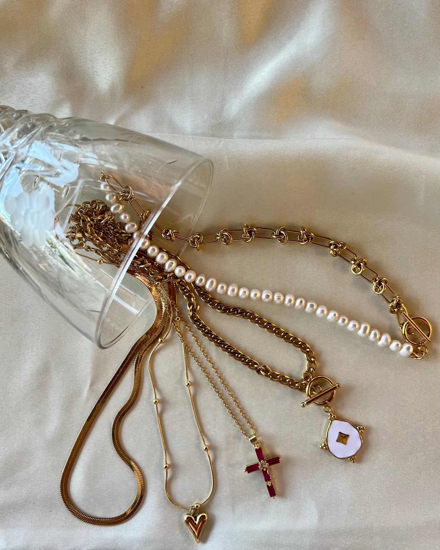 Desde Vibo Valentia  te presentamos una joya elegante. Nuestro Collar Corina  un básico en tus looks. Con un diseño exclusivo realizado en  acero inoxidable bañado en oro 18kl con cadena de serpiente multiposición.  El  Collar  Corina  una joya única, es multiposición, por lo que podrás llevarlo como prefieras.